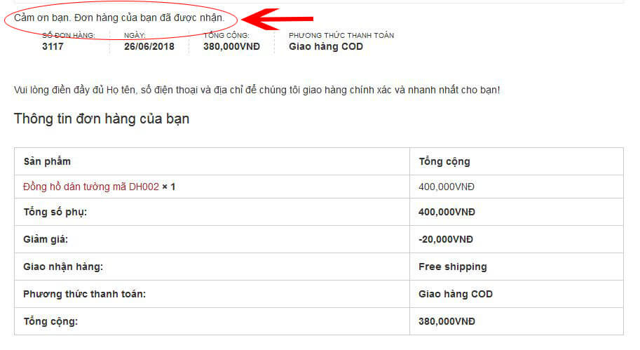 Bước 5: Hoàn thành. Chúng tôi đã nhận được đơn hàng và sẽ liên hệ với bạn để xác nhận đơn hàng.