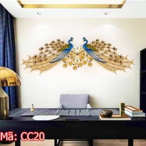 Đồng hồ con công đôi trang trí phòng khách CC57