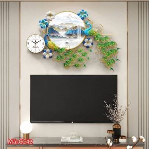 Đồng hồ trang trí con công đẹp màu xanh CC53