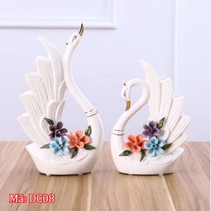 Tượng 2 chú thiên nga trắng và bông hoa DC08