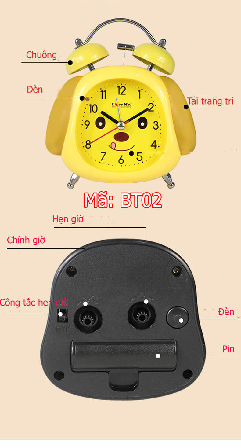 Đây là mẫu đồng hồ báo thức rất đẹp của TuanStore, sản phẩm có thiết kế đặc biệt ngộ nghĩnh vừa để xem giờ giấc và cũng có thể trang trí cho không gian thêm phần đáng yêu.