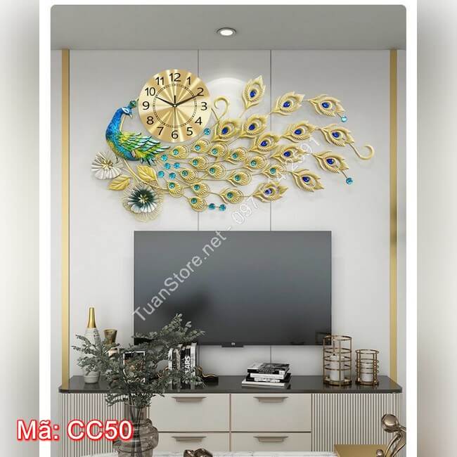 Đồng hồ chim công mỹ nghệ treo tường mã DHCC06