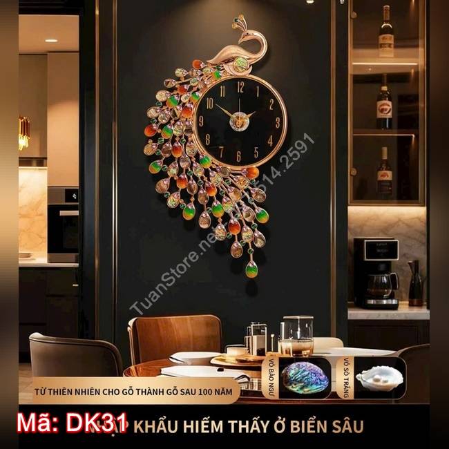 Đồng hồ con công treo tường khảm trai DK31 (2 màu)