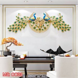 Decor đồng hồ con công đôi cỡ lớn CC33