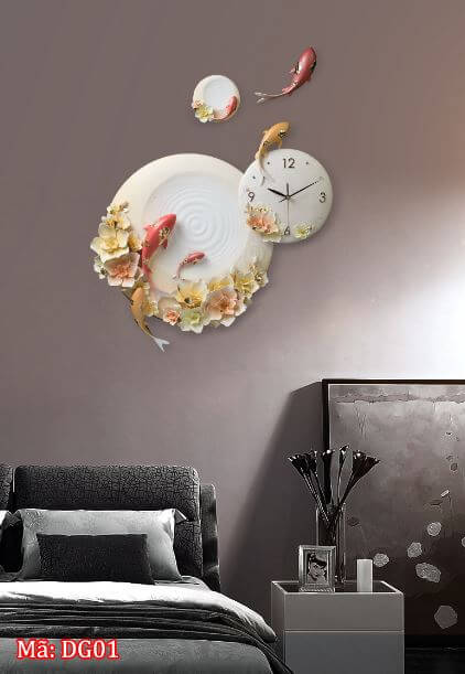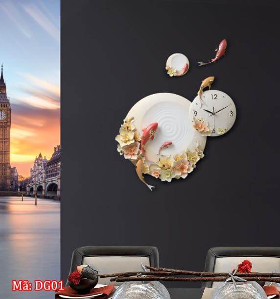 Cá luôn là biểu tượng của tài lộc và thịnh vượng. Do khả năng sinh sản nhiều, cá còn được xem là biểu tượng của sự vượng con, và bởi vì chúng bơi lội tung tăng trong môi trường nước nên chúng còn là biểu tượng của hôn nhân hòa hợp và hạnh phúc. DG01 là mẫu đồng hồ treo tường trang trí hình đàn cá được làm bằng gốm cao cấp mang lại may mắn, tài lộc cho gia chủ. Hay cũng là món quà tặng tân gia nhà mới vô cùng ý nghĩa.