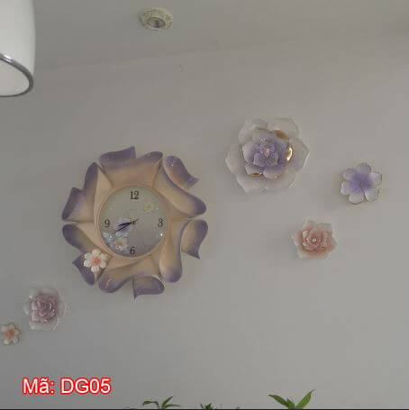 Đồng hồ trang trí hoa hồng tím bằng gốm DG05