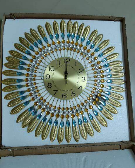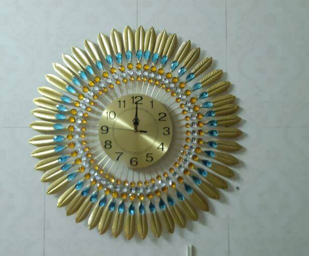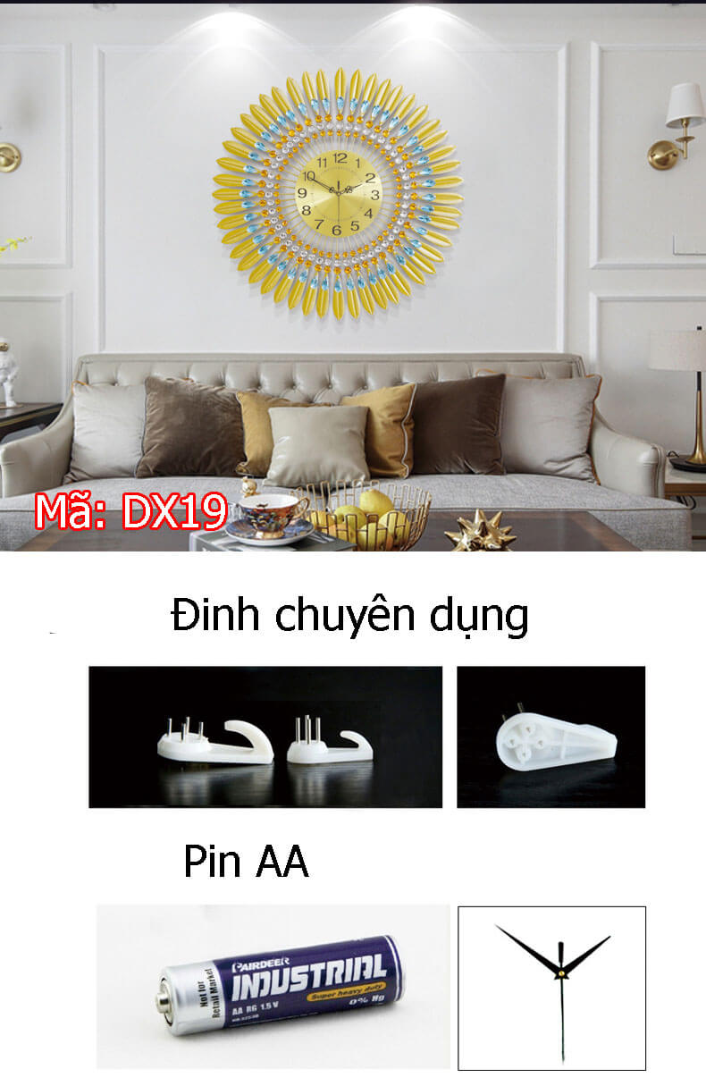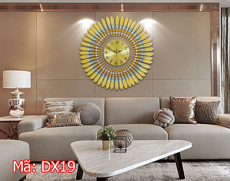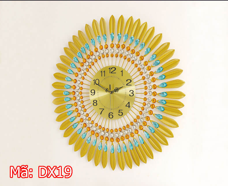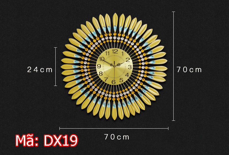 Đồng hồ treo tường trang trí lá vàng rơi mã DX19 có kích thước 70x70cm. Đây là mẫu đồng hồ treo tường loại to rất thích hợp để trang trí nhà cửa, quán ăn.