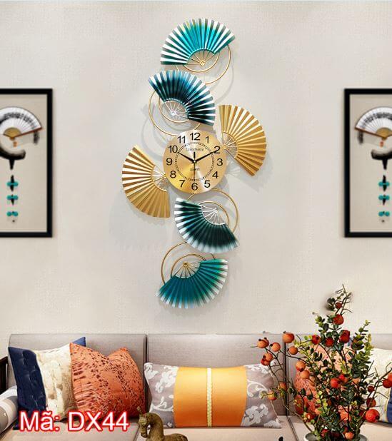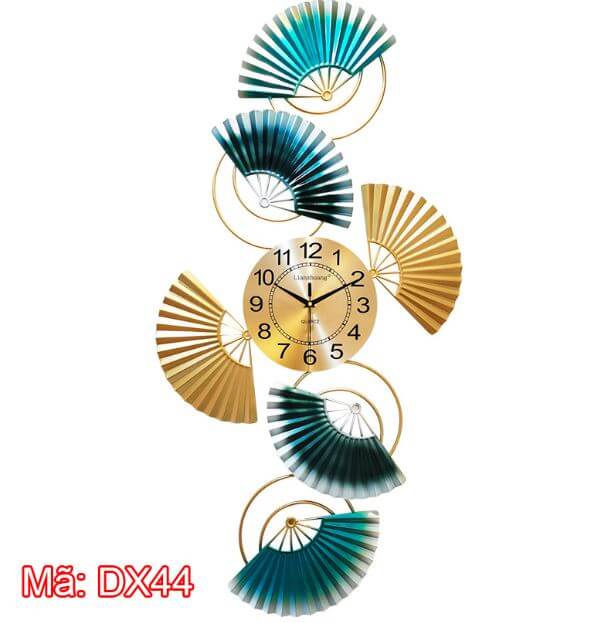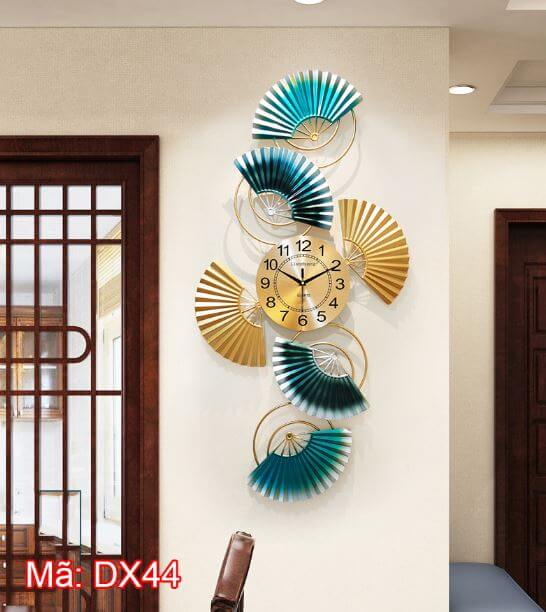 Đồng hồ treo tường đẹp mã DX44 là mẫu đồng hồ treo tường đẹp được thiết kế từ 6 chiếc quạt xoè rộng xếp đan xen nhau tạo thành 1 tác phẩm tuyệt hảo. Sản phẩm có kích thước lớn 50x100cm rất thích hợp để trang trí nhà cửa như nhà hàng, khách sạn, quán ăn, phòng khách, văn phòng,…
