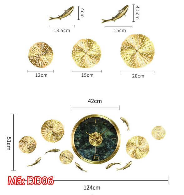 Đồng hồ treo tường đàn cá chép bằng đồng DD06