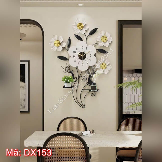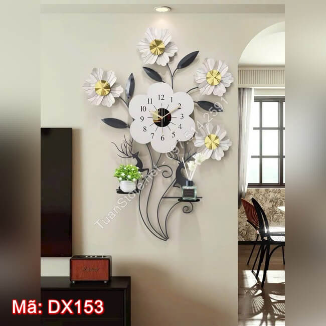 Đồng hồ treo tường decor 5 bông hoa DX153