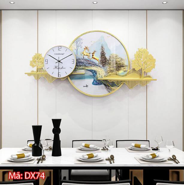 Đồng hồ treo tường trang trí đôi hươu trong rừng DX74