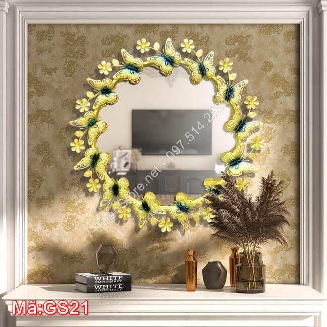 Hãy là người đầu tiên nhận xét “Gương trang trí treo tường đàn bướm vàng GS21” Hủy