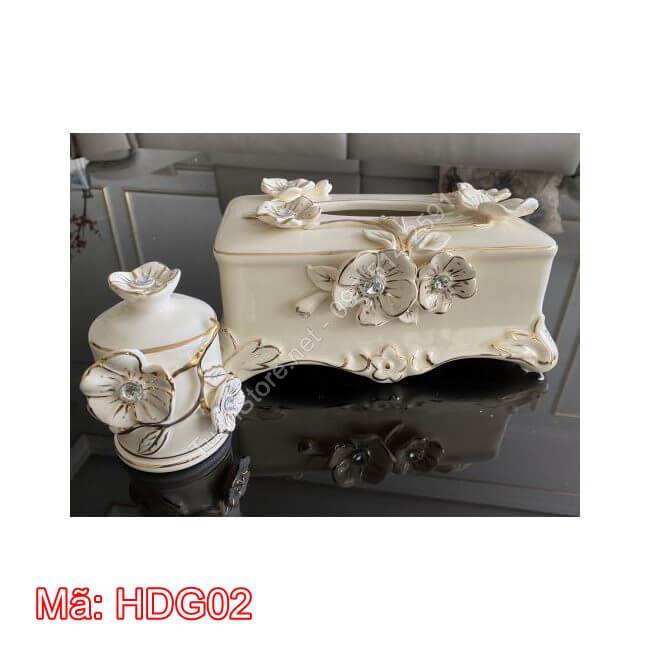 Hộp đựng khăn giấy cao cấp bằng gốm sứ HDG02