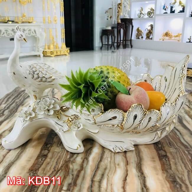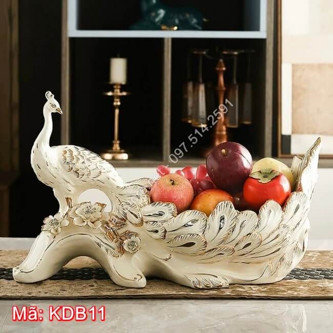 Khay đựng hoa quả decor hình chim công cao cấp KDB11