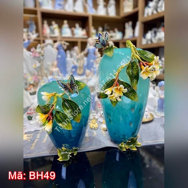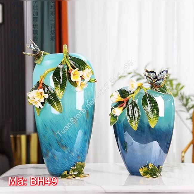 Lọ hoa decor phòng khách màu xanh biển BH49