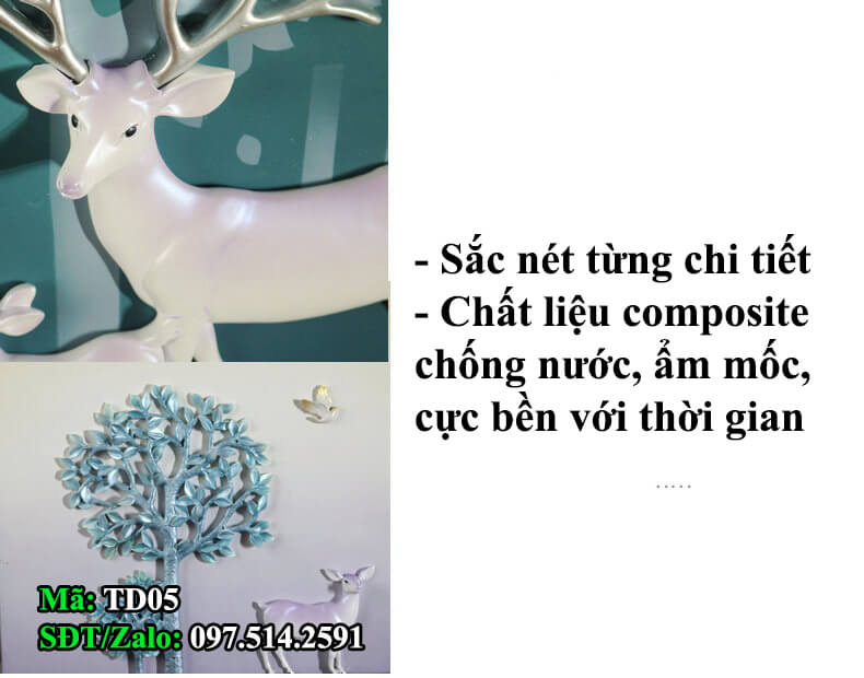Tranh phù điêu phong cảnh 2 chú hươu TG01