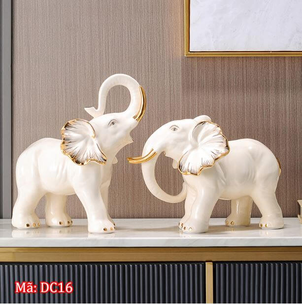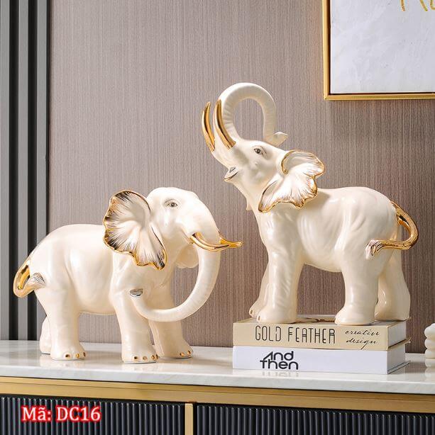 Tượng 2 chú voi trang trí bàn làm việc, phòng khách DC16