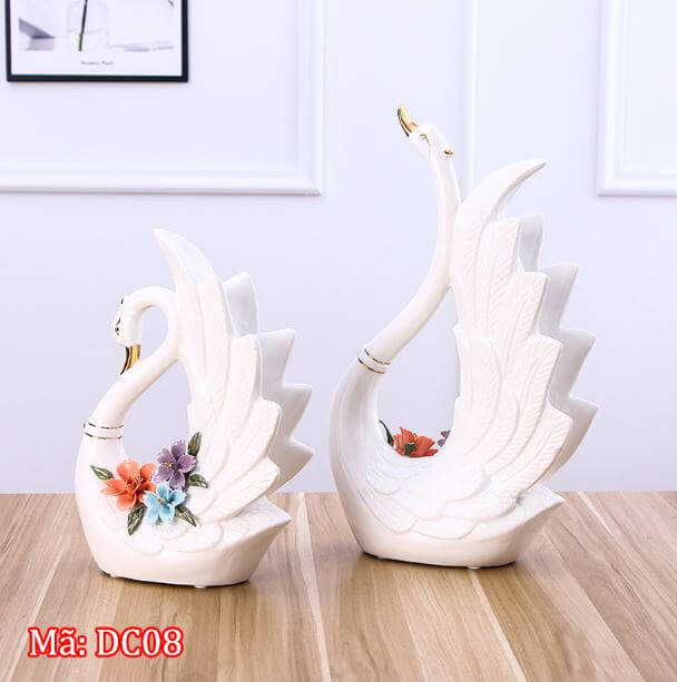 Tượng 2 chú thiên nga trắng và bông hoa DC08