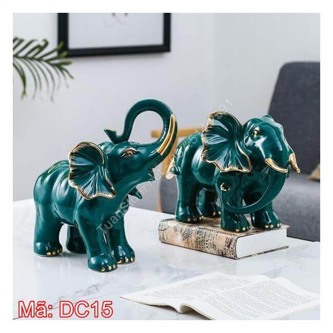 Tượng voi trang trí decor đẹp màu xanh DC15